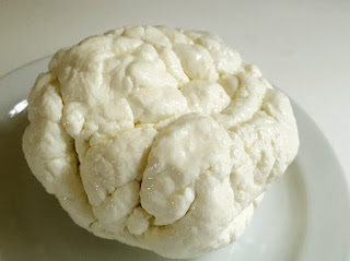 b) This is the second one I tried my "brain" Mozzarella, I used this recipe: Mozzarella: "Making Artisan Cheese" by Tim Smith .  Again I followed it to the word with the exception of the PH...I don't have a PH Meter so I tried taking a small amount of the curd out and seeing if it would stretch (when it was supposed to) - advice from New England Cheese Making's Jim the Cheese Tech.  :)