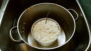 So my curd is sitting on the counter and just before dinner, I'll try a stretch test, that'll have been 24 hours. If nothing happens, I'll try tomorrow after 48 hours.